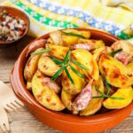 Аромат розмарину чудово підкреслює смак молодої картоплі, надаючи їй легких середземноморських ноток. Страва виходить рум’яною, ароматною та дуже ситною.